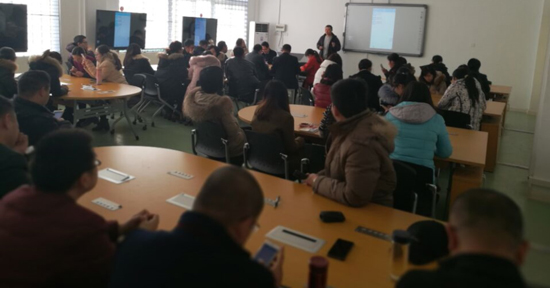 姚敏介绍了“蓝墨云班课”教研活动的背景和对信息化教学改革的积极作用。于乐杰老师讲解了云班课实施的主要内容,主要包括移动平台和WEB平台的使用方法,全体教师边听边操作体验,并对云班课在教学实施中可能存在的问题进行了积极的研讨。