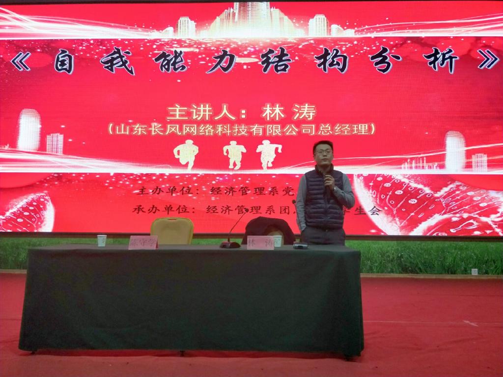 讲座伊始,林涛总经理以自己的人生经历为例,给同学们讲述了《自我结构能力分析》的重要性与方法,让同学们明白做事要善于分析,总结事物经验,脚踏实地,坚持不懈。林总还告诫大家不要骄傲自满,即“你自己说你行不行,别人说你行也不行,说你行的人行才行”。
