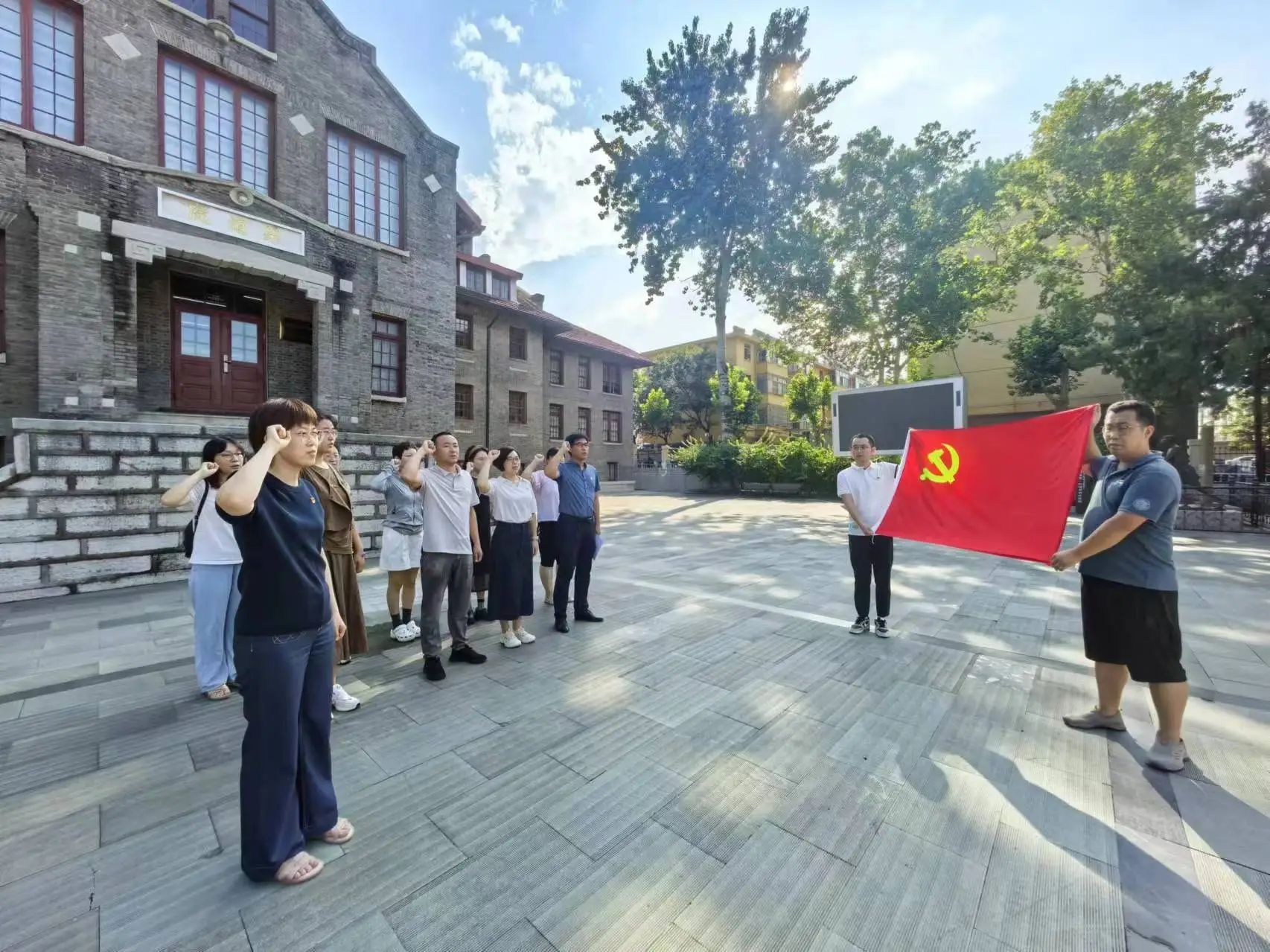 在潍县集中营纪念馆前,全体党员面对党旗,重温入党誓词,坚定理想信念,激发奋进力量。随后,集体参观了“全国重点文物保护单位”“全国爱国主义教育示范基地”——潍县西方侨民集中营旧址博物馆,通过解说员的解说和观看实物、图片和文字资料等多种形式,党员们重温了那段红色岁月,了解潍县乐道院集中营的历史,感悟革命先烈忠贞不屈、舍生忘死的革命精神。