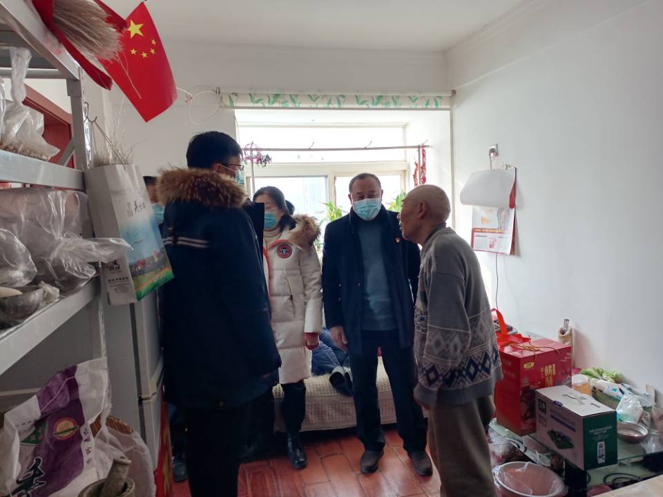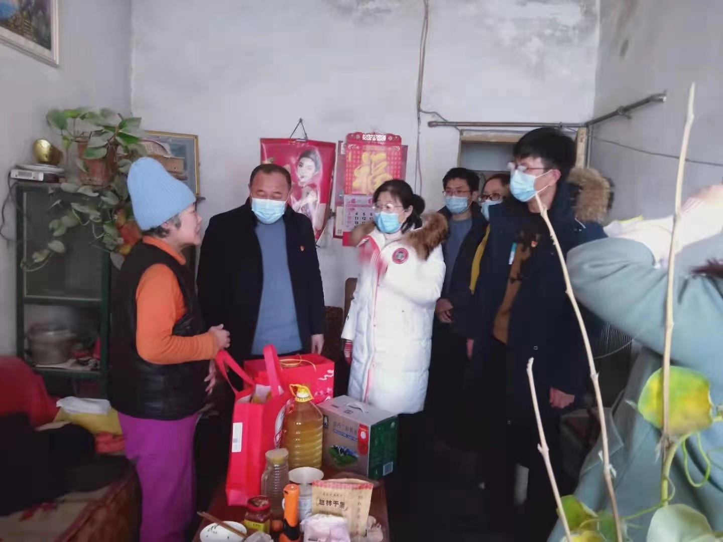 1月19日下午,tyc7111cc太阳成集团党总支全体委员在党总支书记带领下,到奎文区潍州路街道道口社区走访慰问社区困难群众,向特殊困难家庭送上花生油、牛奶、奶粉、饼干等慰问品。