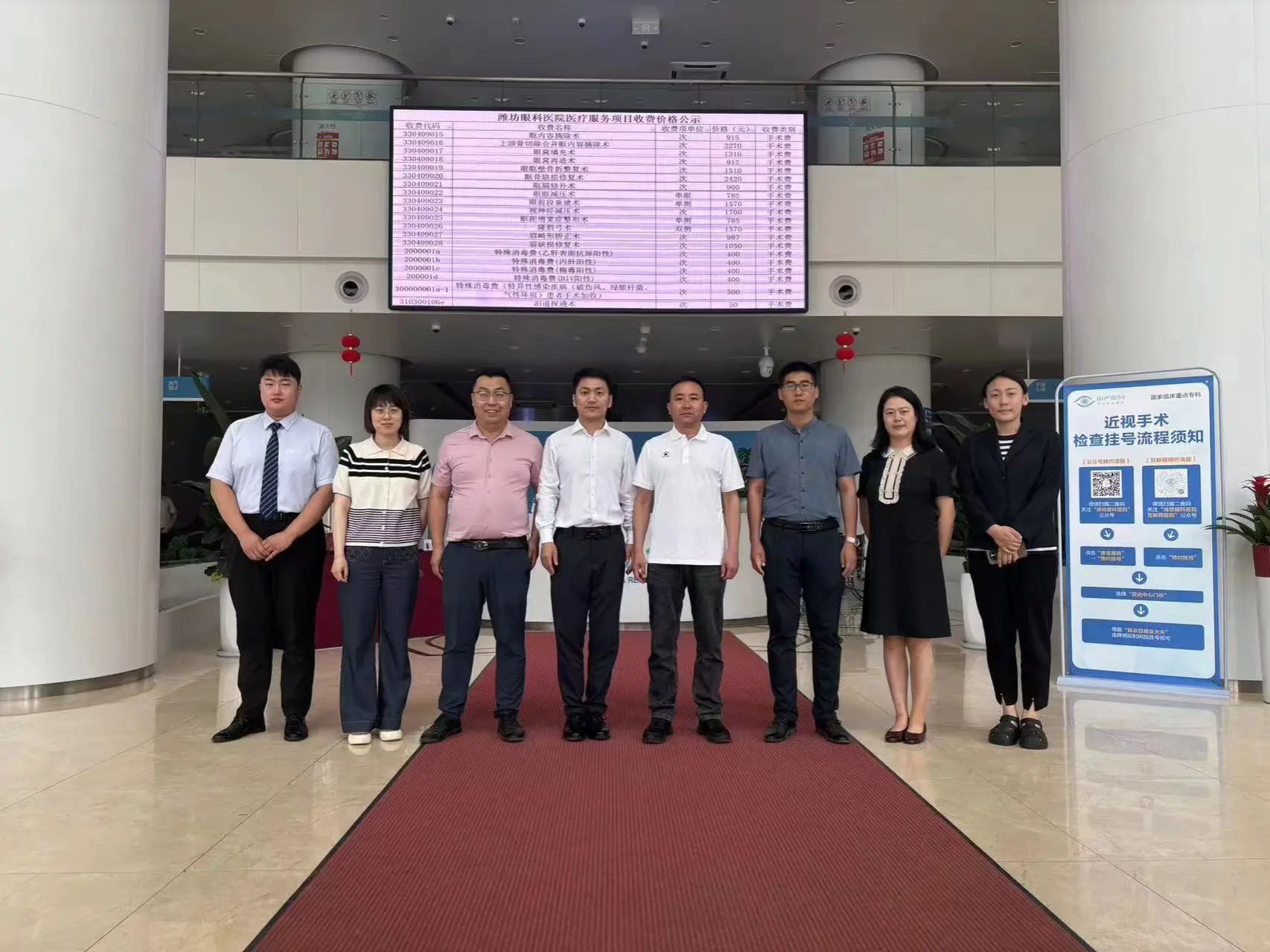 访企人员在肖鹏的带领下先后参观了正大光明眼科集团潍坊眼科医院屈光手术中心、干眼诊疗中心等诊室和党建特色文化宣传栏。