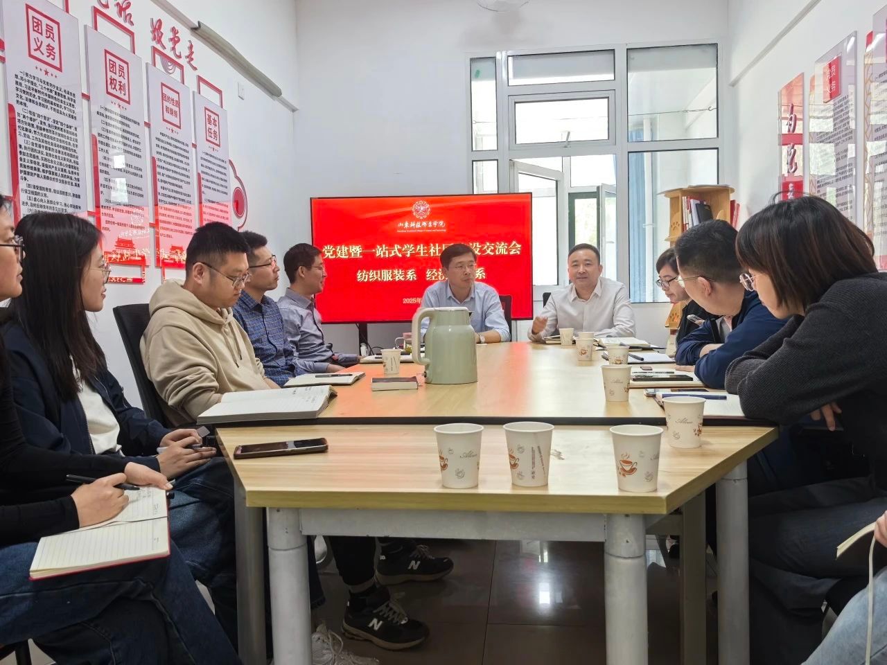 在交流座谈会上,纺织服装系党总支书记丁仕福系统介绍了系部在党建品牌打造、支部规范化建设及“党建+专业”融合等方面的特色做法,双方就党建创新、标杆院系培育、学生管理协同等话题进行深度研讨。学生管理工作交流环节,两系辅导员围绕“一站式”学生社区综合管理模式展开交流,就20号到22号学生社区公共服务长廊一体化建设提出意见,针对学生日常事务管理、网络思想政治教育等学生管理难点交换经验,现场讨论热烈。