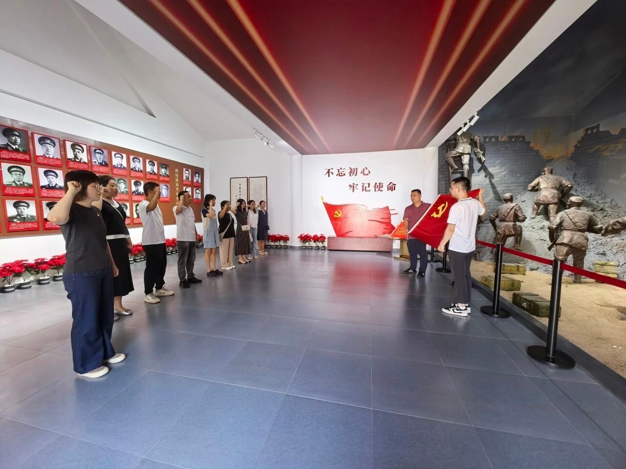 活动过程中,支部党员面向党旗,高举右拳,庄重重温入党誓词。铿锵有力的誓言回荡在展馆中,进一步筑牢了大家的理想信念和初心使命。随后,支部党员集体学习了重要精神文件,党员同志们结合自身思想和工作实际进行了交流讨论,并交纳党费。参观过程中,支部党员步入展厅,通过大量珍贵的历史照片和实物展陈回顾了潍县战役的光辉历程和英勇事迹。