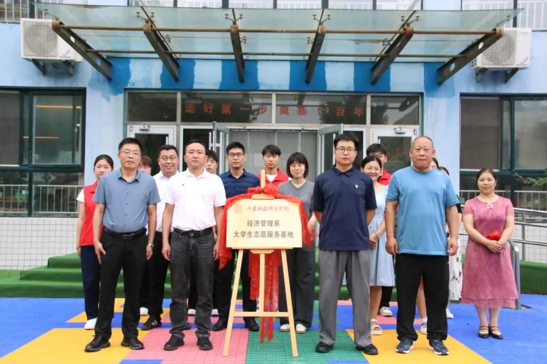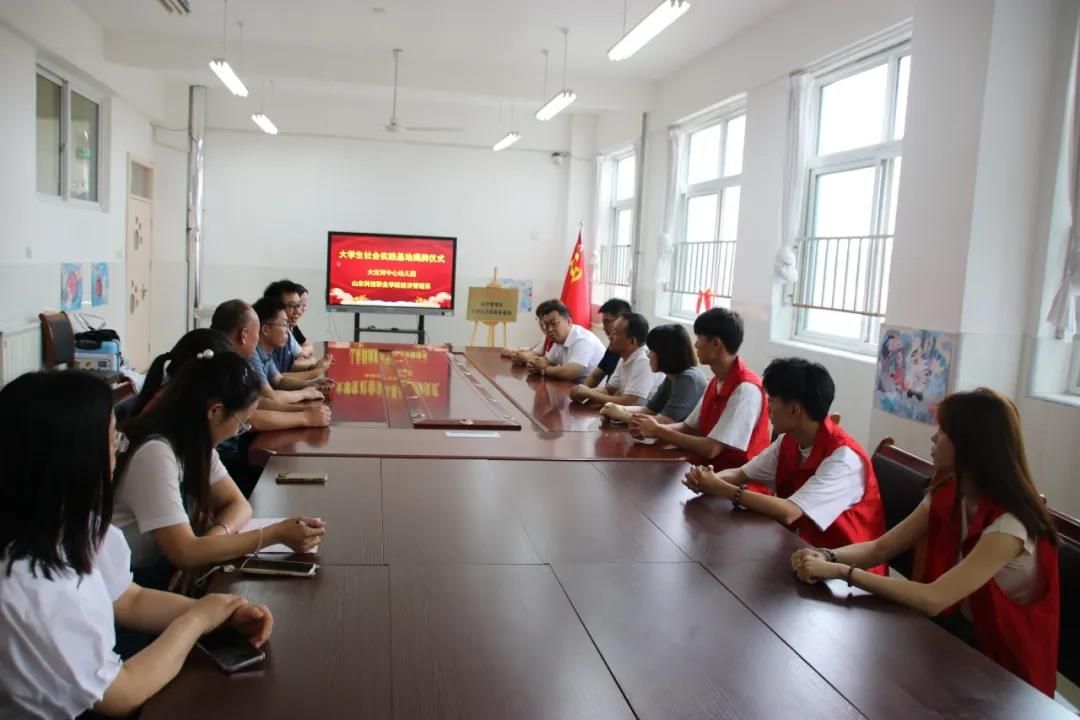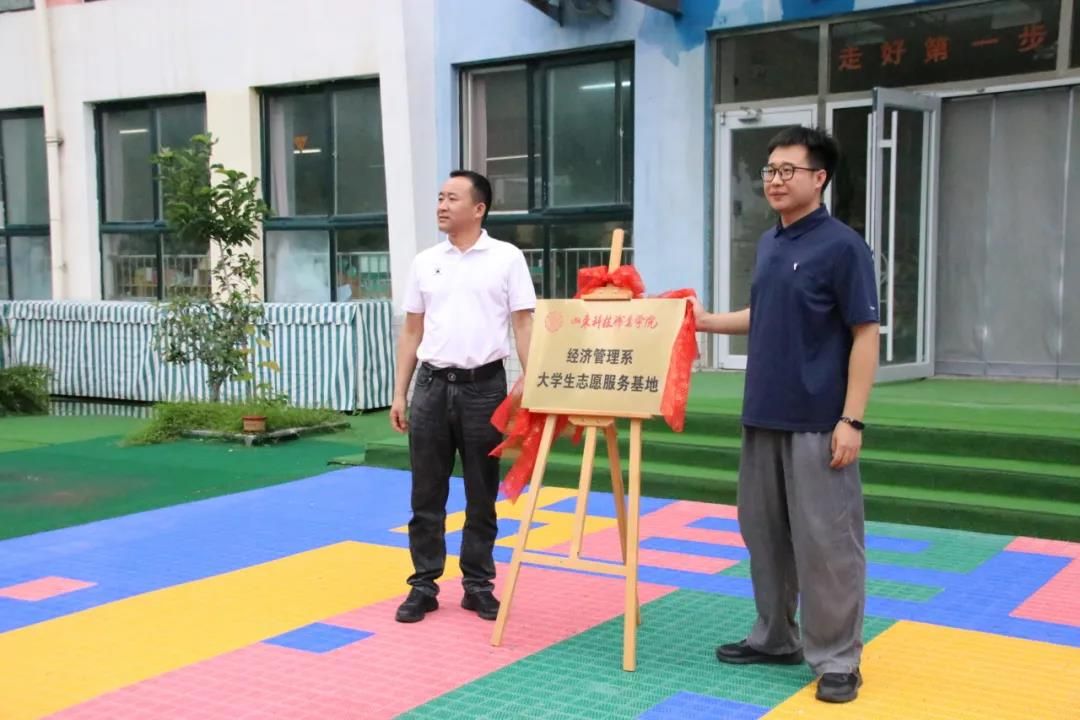 大汶河中心幼儿园园长对团队的到来表示热烈欢迎,对团队成员的实践活动教学活动表示充分的肯定。双方就实践基地建设、实践资源共享达成合作意向。会后,双方领导共同为“大学生志愿服务基地”揭牌。