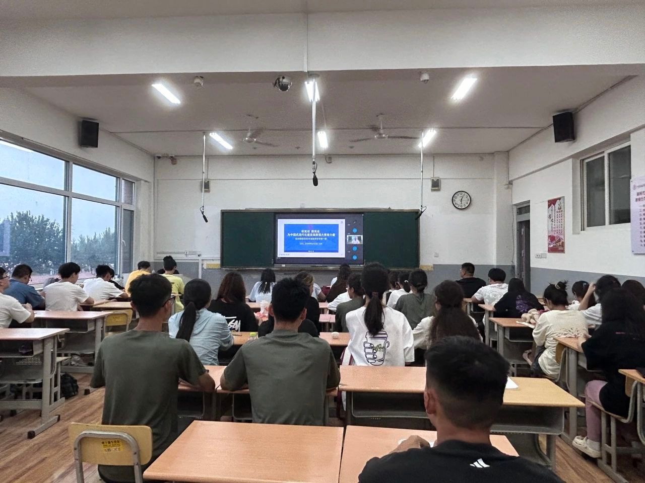 课上,门玉琢带领大家重点聚焦关键词“中国式现代化的重大意义”,引导师生正确理解中国式现代化的领导力量是中国共产党、中国式现代化的价值导向是人民至上、中国式现代化的发展模式是和平发展、中国式现代化的根本原则是独立自主,全面把握中国式现代化的中国特色、本质要求。在全面建设社会主义现代化国家的新时代新征程上,用习近平新时代中国特色社会主义思想凝心铸魂、团结奋斗。阐述了强化廉洁意识、赋能青春未来的重要性。强调了学校对电信网络诈骗、宿舍安全、防溺水安全、交通安全等安全教育常抓不懈的恒心决心。
