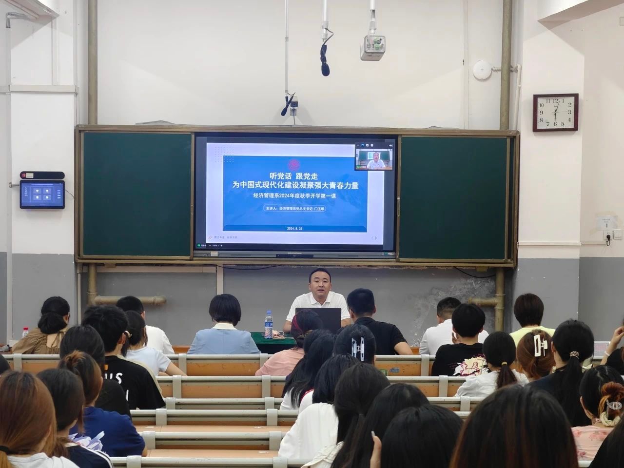 开学第一课以学校“精·为”核心文化为切入点,以“听党话 跟党走 为中国式现代化建设凝聚强大青春力量”为主题,从系部2024年上半年工作成绩、理想信念教育、廉政教育、安全警示教育等四个方面进行了全面讲解。