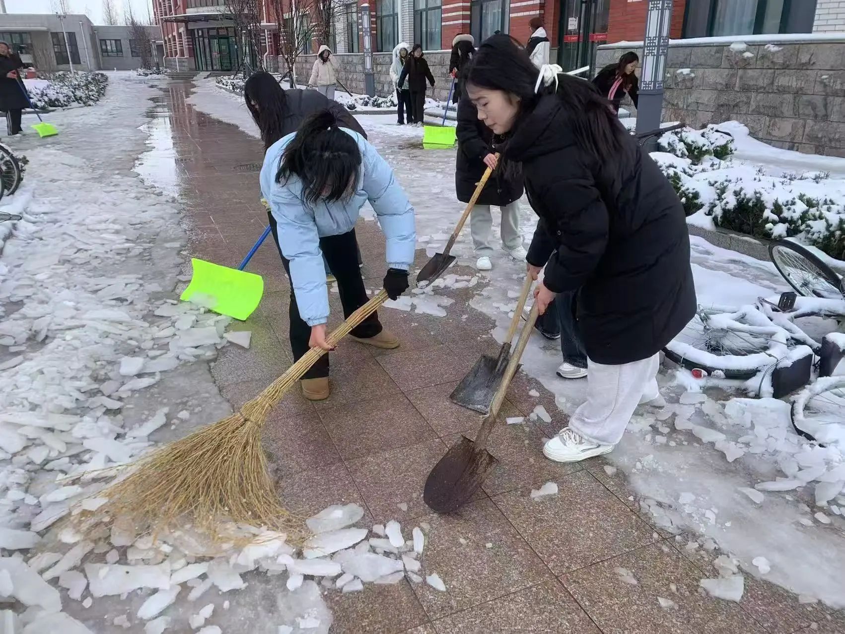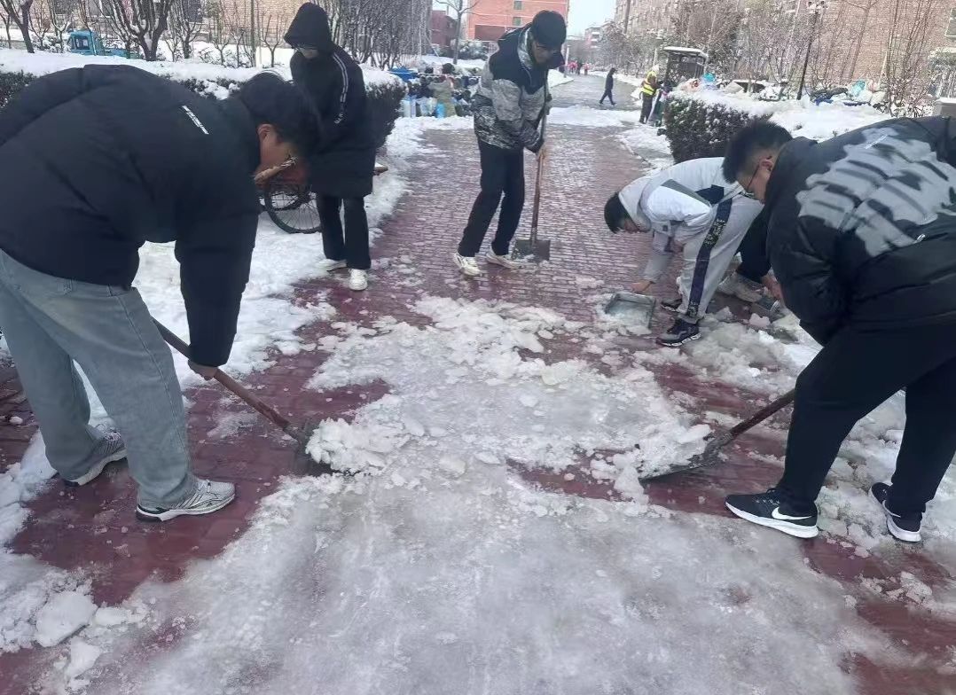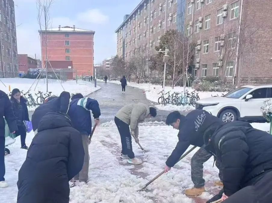 3月3日早,在系党总支、团总支的号召下,tyc7111cc太阳成集团40余名学生志愿者在笃志楼、公寓楼沿线开展清雪除冰活动,全力守护师生出行安全,以实际行动践行雷锋精神。