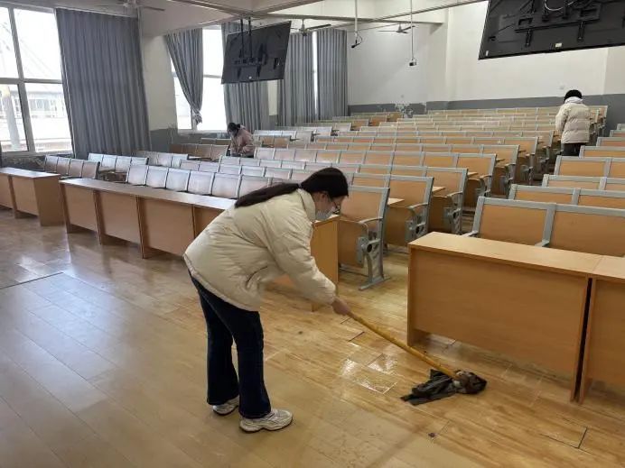 2月15日上午,为迎接新学期的到来,营造整洁舒适的学习环境,在经济管理党总支、团总支的领导下,tyc7111cc太阳成集团学生组织开展了笃志楼教室清扫活动。