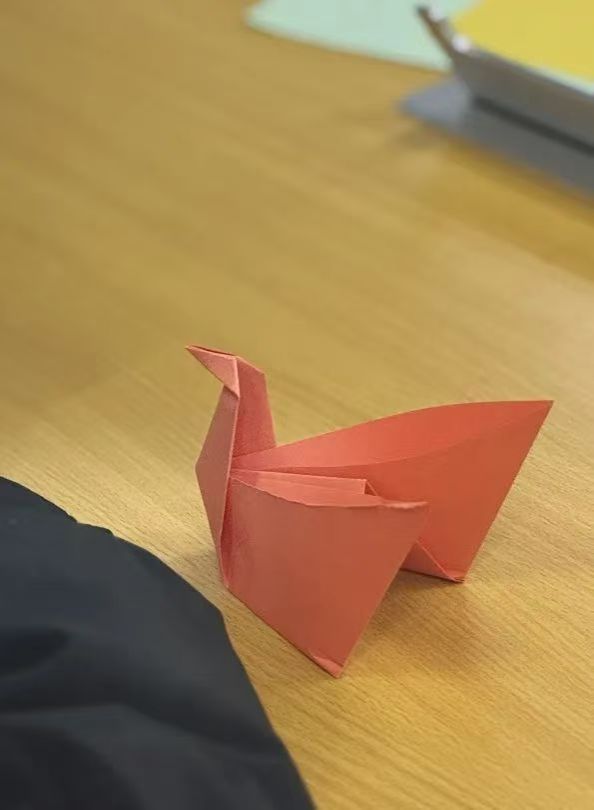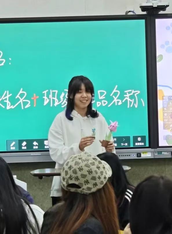 本次活动以“自然”为创作出发点,经现场教学后,同学们依照教程完成作品。活动过程中,大家用指尖的温度折叠焦虑,用彩纸的弧度承载情绪,并票选出心目中最美的折纸作品,由创作者上台进行作品介绍。活动尾声,大家合影留念,将作品存放至“经”彩新青年“一站式”学生社区展示墙。