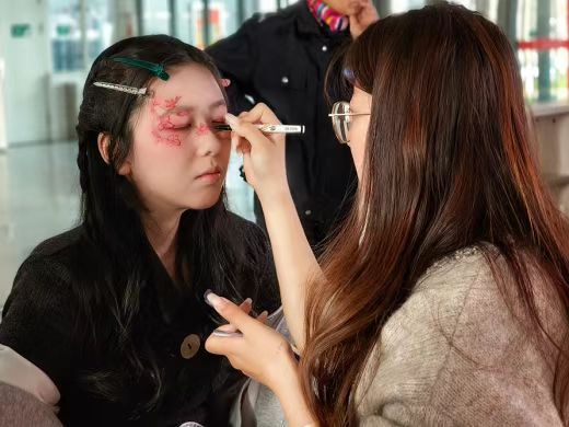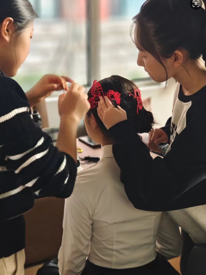本次活动,将中华优秀传统文化与现代设计理念相结合,通过传统文化讲解、发型和妆面设计、展示赋分三部分开展,由参赛者向在场师生介绍中国古典妆发的设计理念和技巧,并分组带领组员完成妆发设计。文化赋能,创意生花,苏轼“小轩窗,正梳妆”的缱绻,温庭筠“小山重叠金明灭”的婉约,都在发丝间流转着东方特有的含蓄情思。活动结束后,参赛者前往社区及龙兴湖周边进行摄影留念。