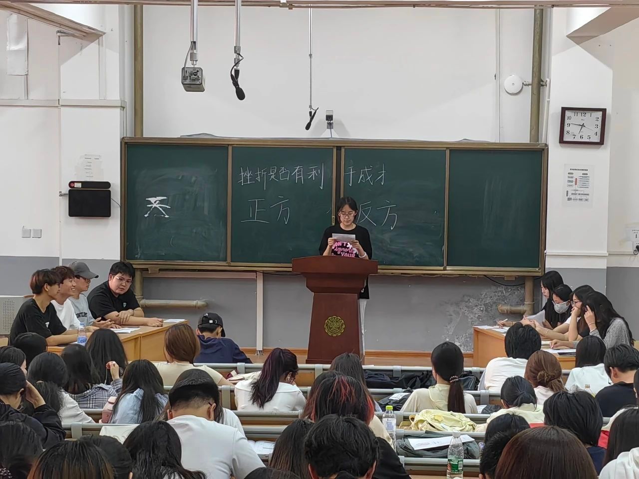 本次辩论赛不仅为同学们提供了一个展示自己的平台,还提升了同学们的思辨能力和表达能力,培养了团队合作意识。希望同学们在日后的校园活动中也同样充分彰显自我,生动诠释青年朝气蓬勃的活力。