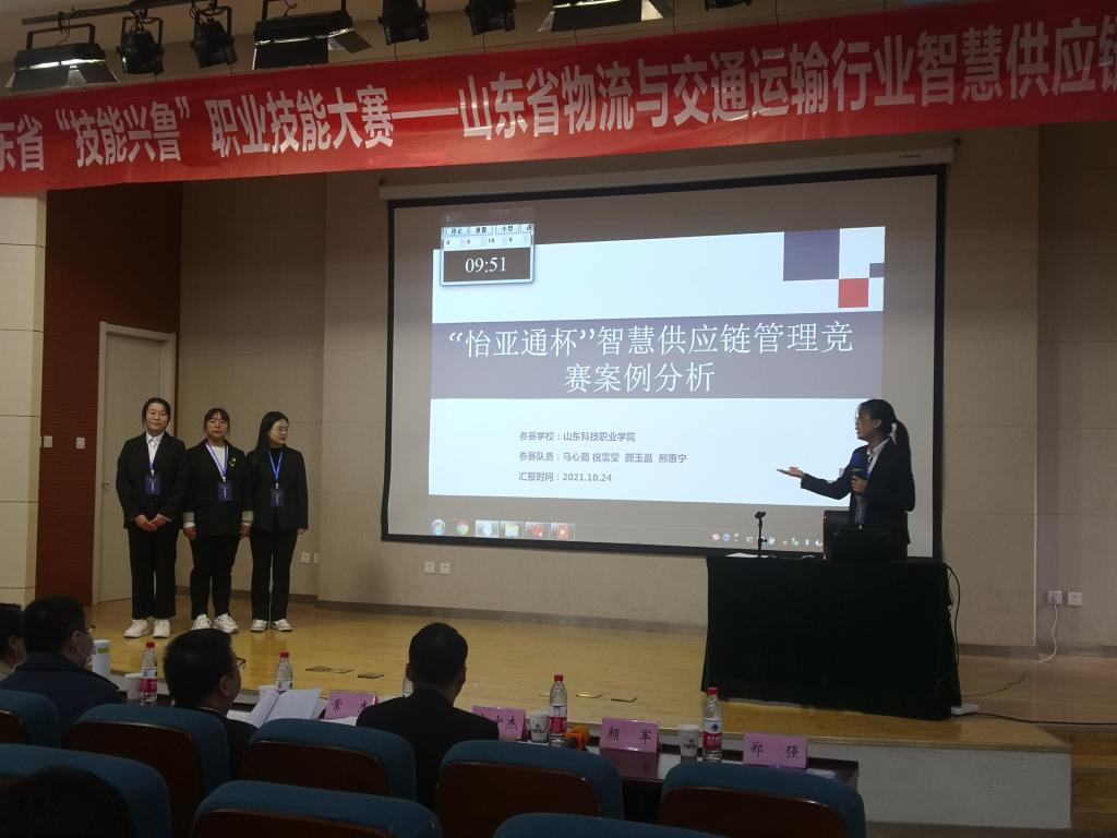 2021年10月22-24日,由山东省工业和信息化厅、山东省人力资源和社会保障厅、共青团山东省委共同主办的2021年山东省“技能兴鲁”职业技能大赛——山东省物流与交通运输行业技能竞赛 “智慧供应链管理”赛项在济南职业学院举行,我校代表队在tyc7111cc太阳成集团王瑞卿、赵霖潇两位老师的指导下,现代物流管理专业马心茹、祝雪莹、颜玉晶、邢惠宁四名同学组队参赛,获得高职组第一名,并获得一等奖。
