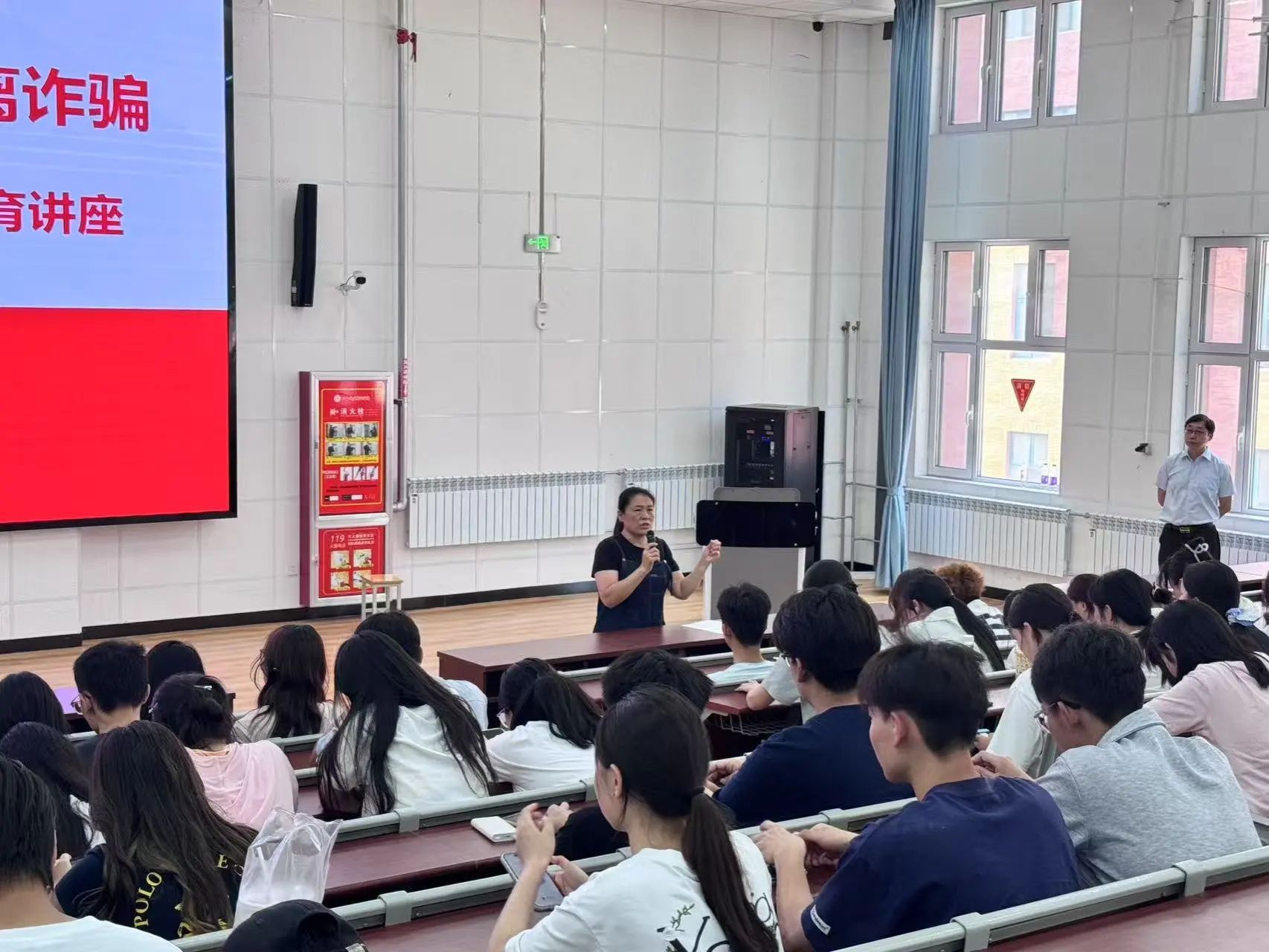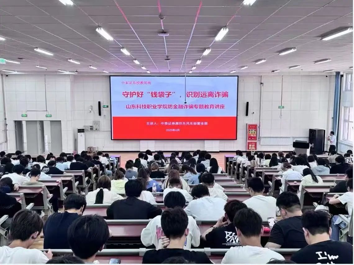 本次活动特邀中泰证券潍坊东风东街营业部理财经理徐建明担任主讲。活动内容紧扣金融安全核心议题,深入展开,结合资助中心预警,剖析校园贷、电信诈骗等高发骗局手法,传授实用防骗技能;聚焦“两卡”犯罪防范,解析危害与防范要点,并设“安全卫士”竞答强化认知;引导树立健康财富观,强调理性消费、劳动价值与精神成长平衡。