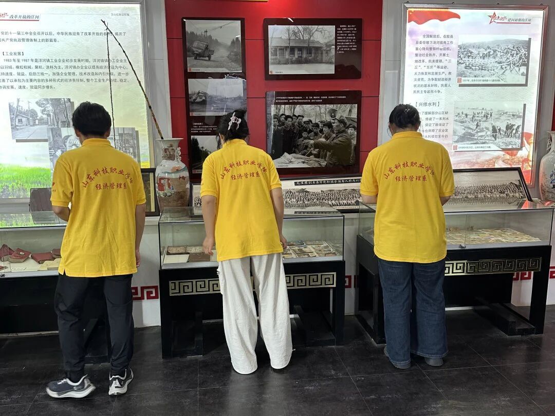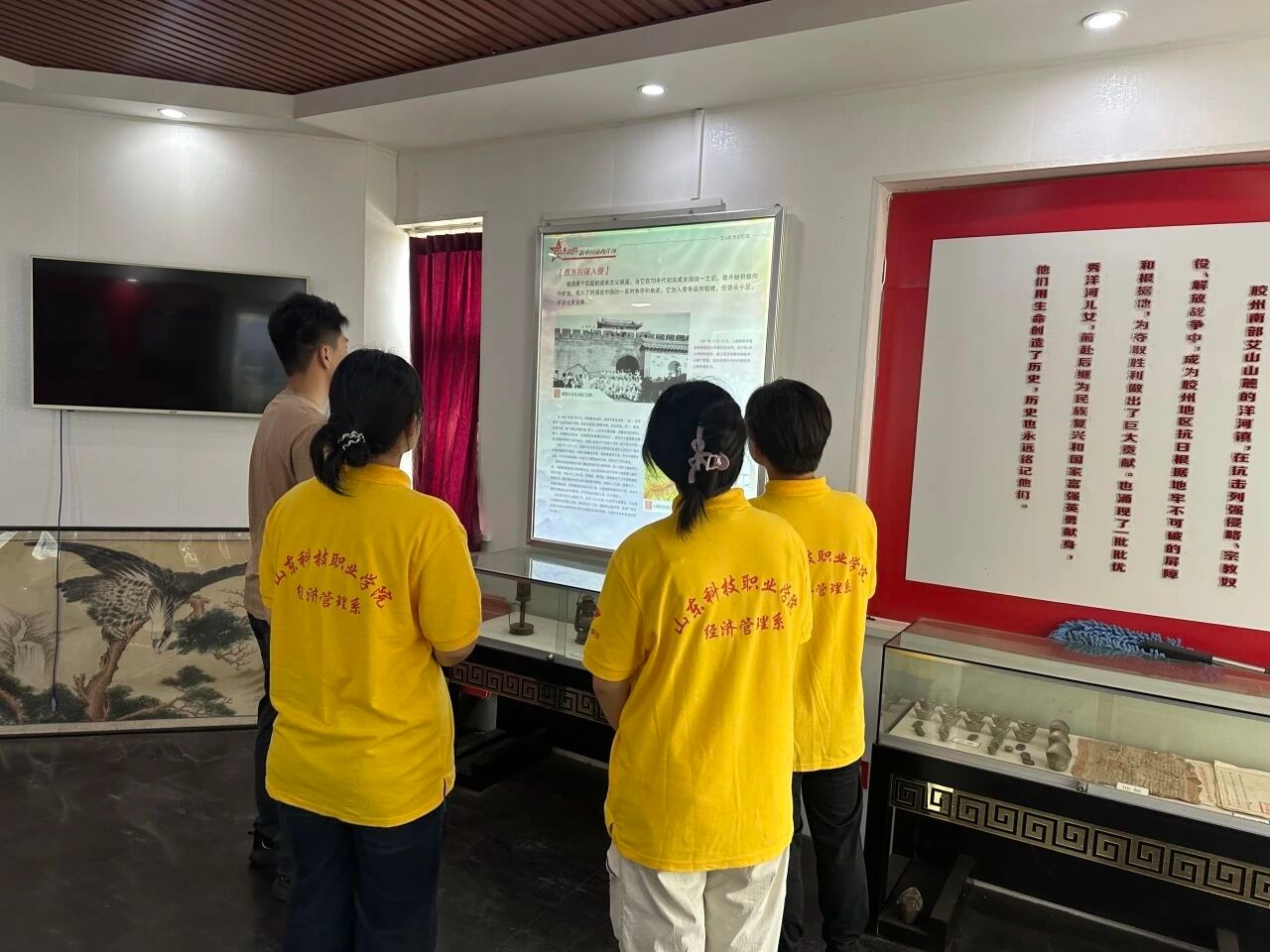 7月18日,团队来到洋河镇河西郭村艾山红色记忆纪念馆。记忆馆内陈列的珍贵史料与革命文物,生动再现了洋河镇在党的领导下从战火纷飞到建设发展的奋斗历程。队员们驻足于斑驳的老照片、泛黄的革命文献前,聆听讲解员讲述革命先辈的英勇事迹。在这里,历史的厚重与现实的脉动交织,无不诉说着那段烽火岁月中洋河人民的坚定信仰与无私奉献。此次活动让青年学子在红色记忆中叩问初心,从历史纵深中汲取力量,红色基因是我们奋斗的力量源泉,革命先辈的精神永远指引着我们前行的方向。