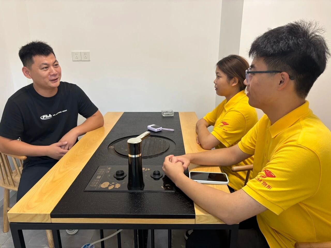 7月17日,团队采访了洋河镇退伍军人杜凯。他曾是北京武警部队的一名战士,退役后不忘学习,完成学业后选择自主创业,如今经营着一家烧烤店。他说:“部队教会了我坚韧和担当,退役不褪色,我要用双手创造新生活。”他鼓励队员们珍惜青春时光,将个人理想与国家发展紧密结合。谈及乡村“空心化”问题与老龄化问题,他认为这是城乡发展失衡的时代缩影,既理解青年逐梦选择,又期盼乡村重拾吸引力,让年轻人“走得出去,也回得来”。