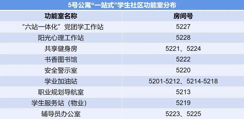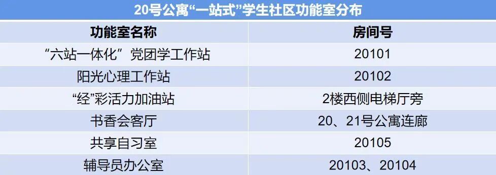 “一站式”学生社区功能室分布列表