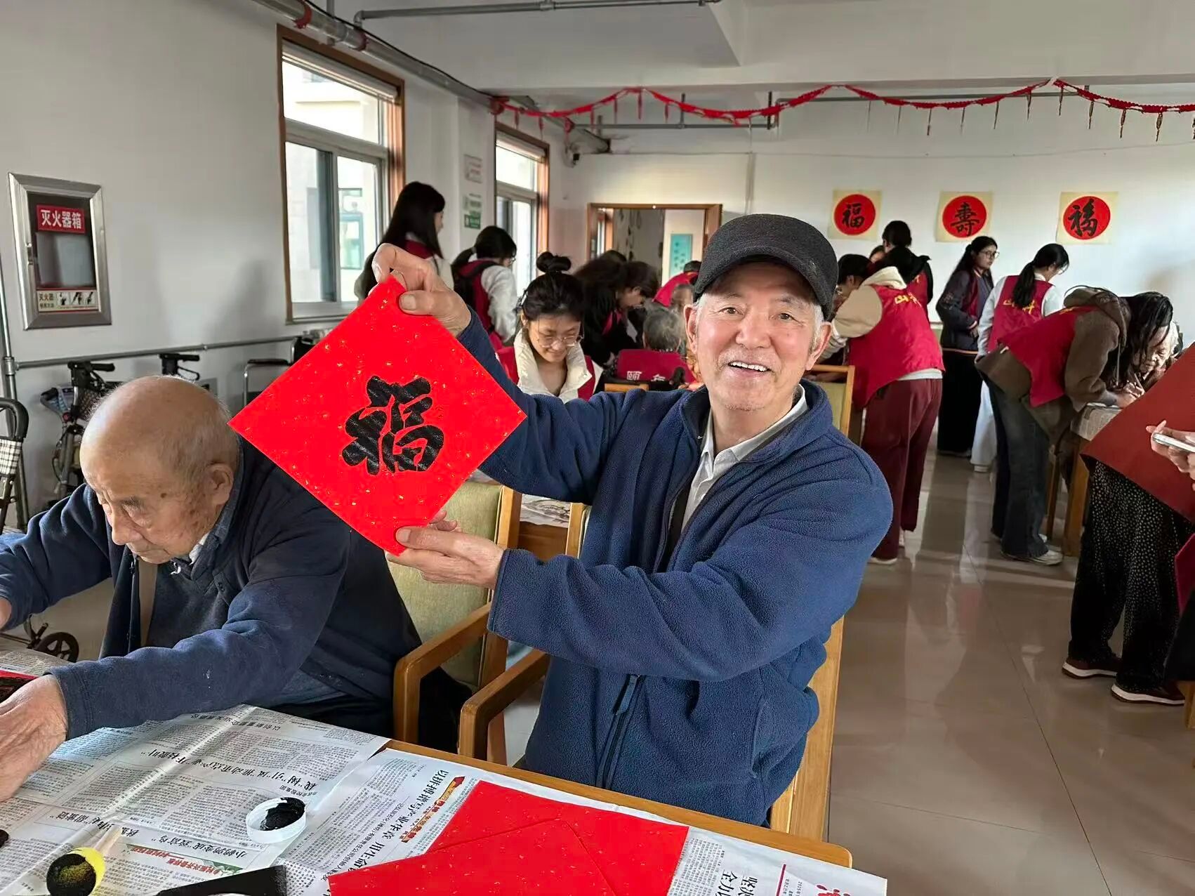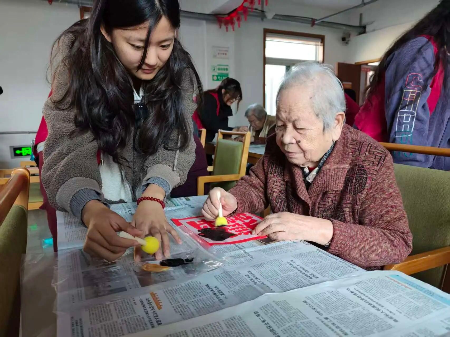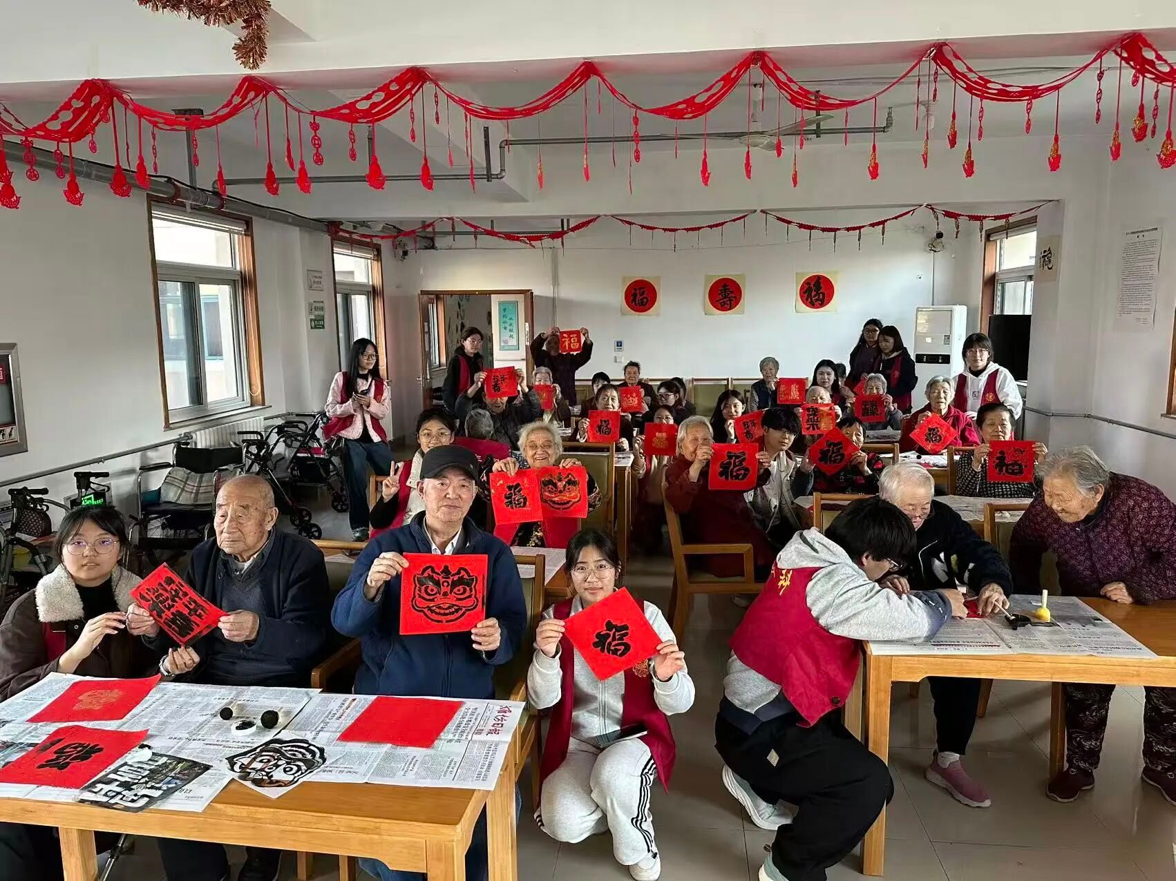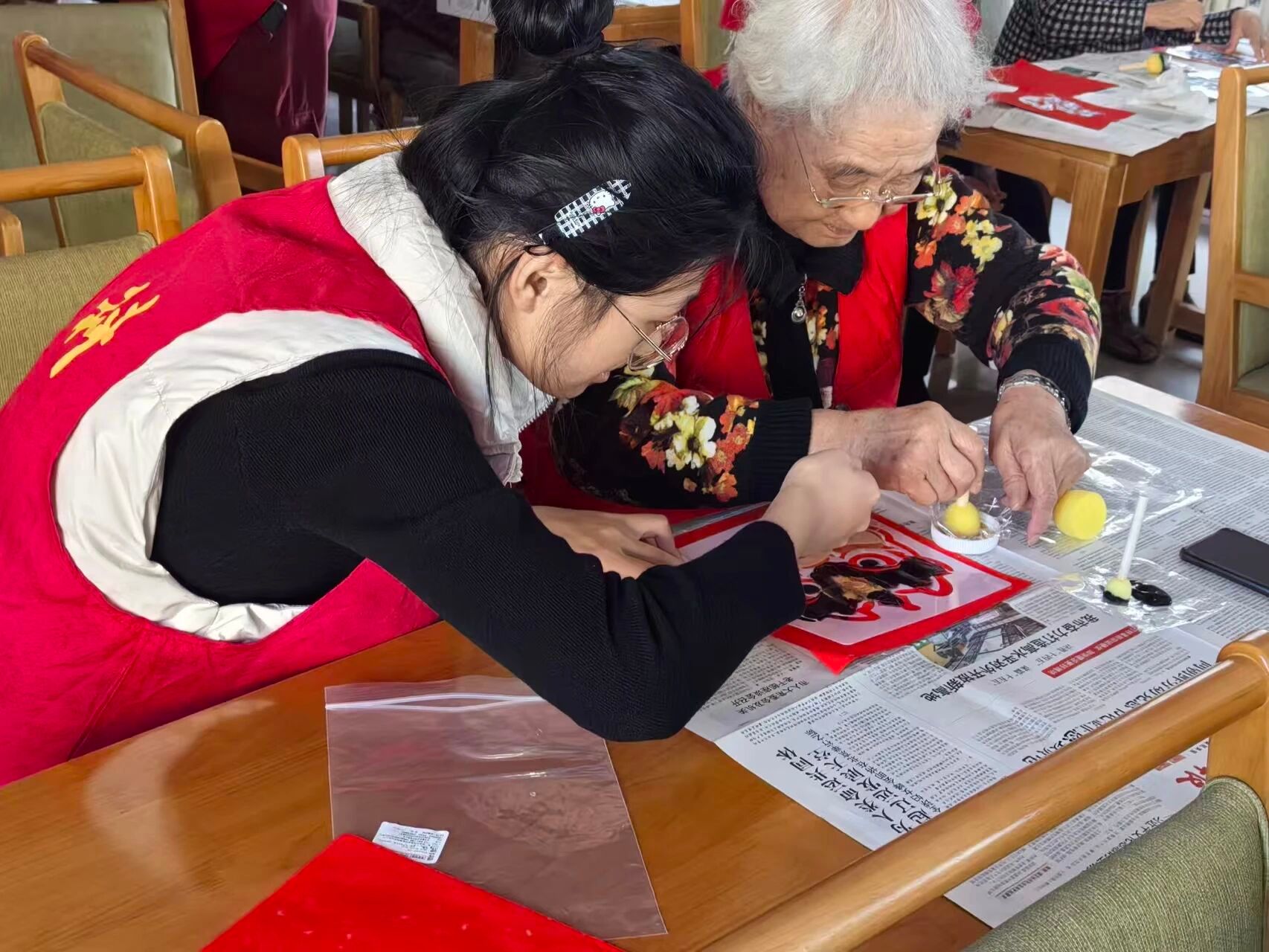 活动前,志愿者精心准备了非遗拓印与扭扭棒手工材料。活动现场,老人们认真挑选镂空图板,用海绵蘸取颜料轻轻拓印,红纸上便跃出金色的“福”字与灵动瑞狮,每一幅作品都凝聚着喜悦与专注。随后,志愿者们陪伴老人用“扭扭棒”制作手工,五彩的扭扭棒在指尖翻飞,化作柿子、花朵等生动造型。活动现场欢声笑语不断,老人们在动手中感受创造的乐趣,在陪伴中体会关怀的温暖。