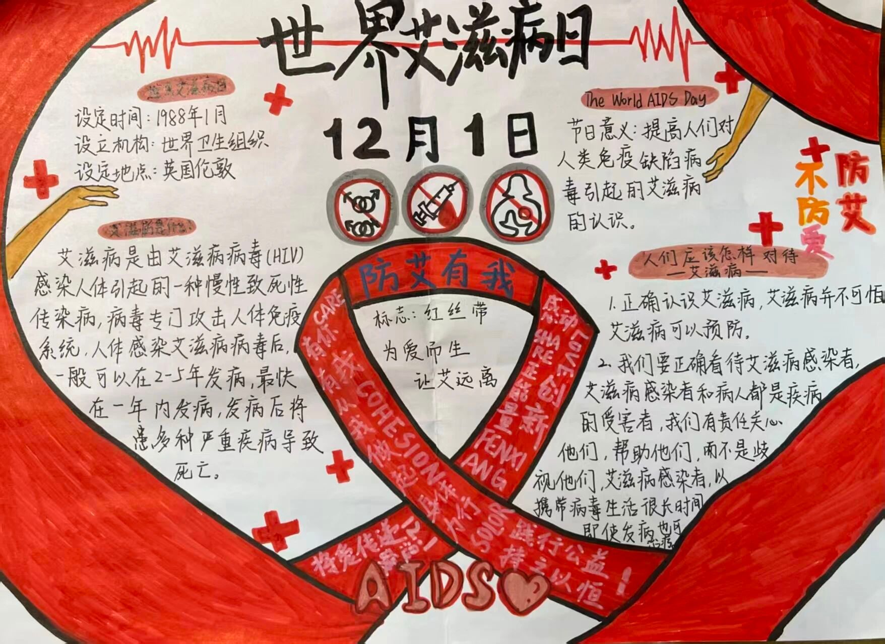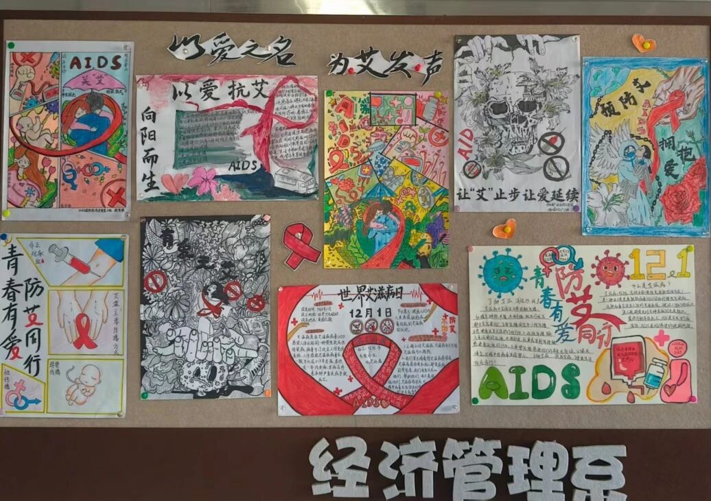 12月2日至5日,“青春无艾,与爱同行”绘画征集与板报展览活动持续推进:同学们以红丝带、爱心为元素,创作水彩、漫画作品百余幅,将防艾知识融入艺术表达;板报展览吸引师生驻足交流,在校园内营造出“主动学艾、共担责任”的浓厚氛围。