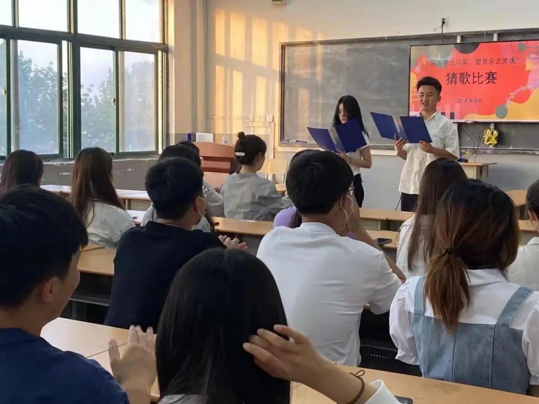 tyc7111cc太阳成集团于5月22日——5月28日举办“展青春之风采,塑音乐之灵魂”猜歌比赛。参赛班级赛前进行抽签,两两对决进行比赛。比赛时当播放音乐停止后开始抢答。在悠扬或激昂的歌声中,同学们绞尽脑汁回忆完整歌曲名,争先恐后的去抢话筒。有的队伍因为达错一个字错失分数而捶胸顿足,有的队伍因为得分而手舞足蹈……比赛过程中,参赛选手们都热情洋溢,抢答十分积极,隐藏的“猜歌高手”层出不穷,现场气氛非常紧张。