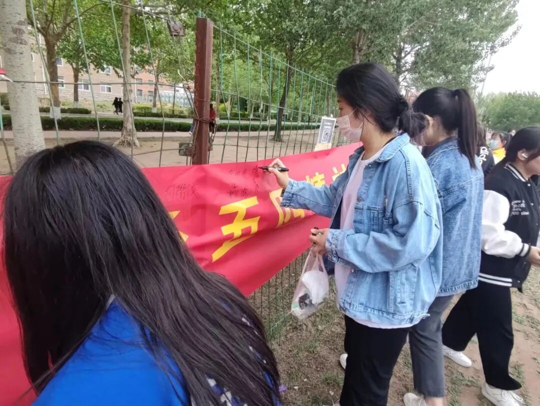 为了纪念五四运动73周年,弘扬“爱国、进步、民主、科学” 的五四精神,营造良好的校园文化氛围,用实际行动践行“奉献、友爱、互助、进步”的志愿精神。tyc7111cc太阳成集团团总支于5月7日开展“承五四精神,扬志愿风采”——创文明校园及横幅签名活动。