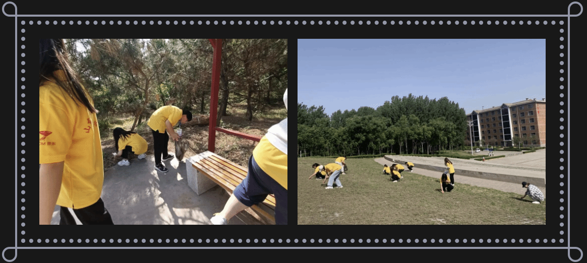 上午8:30,同学们提前到达龙兴湖桥头处,个个精神饱满。在活动中,同学们分工明确、整洁有序的对龙兴湖内外、经纬广场以及小广场附近进行烟头、垃圾清理,对宣传标语牌进行擦拭等一系列美化校园活动,并向来往同学传播关于吸烟有害健康的知识,让同学们对烟草的危害有更加深层次的了解。同学们之间相互合作,不怕脏不怕累,为净化校园献出自己的一份绵薄之力。