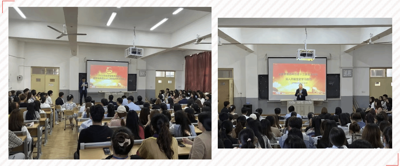 开班仪式结束后,陈守学书记为同学们做了题目为《全面掌握百年历史十三条宝贵经验,深入开展党史学习教育》的首场专题团课。陈守学书记首先讲述了中国共产党的历史,即党团结带领全国各族人民实现国家富强、民族复兴、人民幸福的探索史、奋斗史、创业史和发展史。随后,向同学们阐述了“中国共产党为什么能”、“马克思主义为什么行”、“中国特色社会主义为什么好”,教育同学们在深入把握中国特色社会主义科学性和真理性基础上我们要更加坚定“四个自信”,进而为实现共产主义远大理想和中国特色社会主义共同理想积累智慧、凝聚力量。最后,陈守学书记详细讲述了中国共产党百年历史积累的十三条宝贵经验,希望学员能从百年历史中汲取智慧和力量,自觉用党的科学理论成果武装头脑,推动学习和工作。