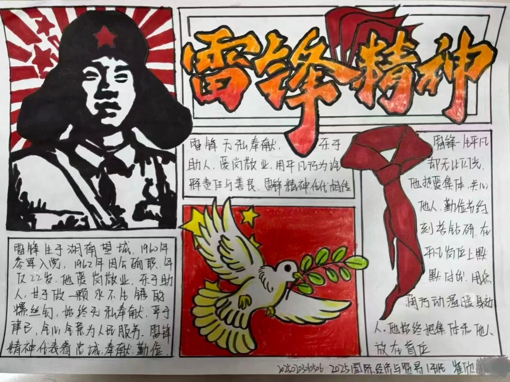 活动开展期间,同学们围绕雷锋精神、志愿服务、青春奉献、责任担当等关键内容,以征文、手抄报为创作载体,用笔墨描绘榜样风采,以文字诠释奉献意义,将身边的暖心事迹与雷锋精神的时代内涵相结合,在思考与创作中深入感悟雷锋精神的当代价值,充分展现出经管学子向善向上、踔厉奋进的青春风貌。