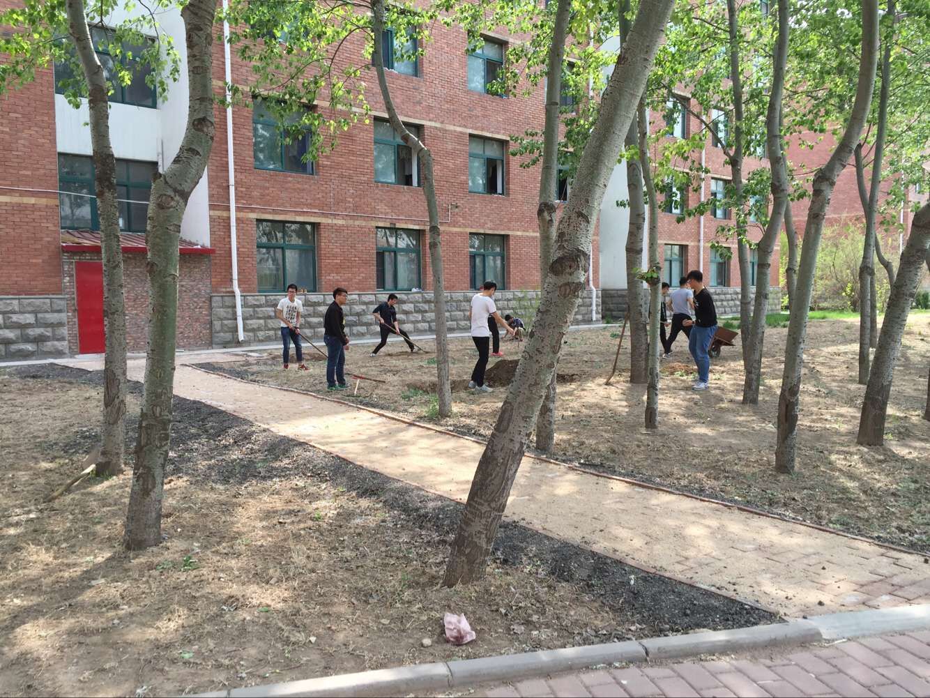 活动开始后,全体成员积极踊跃,有序的进行分组,对楼后几个花坛里的石块、垃圾依次进行清理,虽然任务量较大,但大家还是一丝不苟的完成了任务,把花坛里的石块、垃圾一并清理完毕。