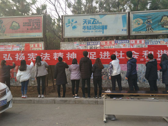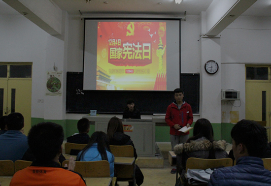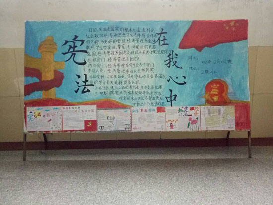 本次活动的主旨为“认真贯彻宪法精神,提高全校法制观念”。首先由团总支召开师生动员大会,悬挂宣传横幅,制作宣传板报,促进全体师生树立”宪法权威”意识,提高宪法认知。利用晚自习时间组织各团支部观看了国家宪法相关视频,并组织召开“宪法在我心中”PPT主题演讲,举办了宪法知识竞答比赛,打造从多方面贯彻落实宪法宣传教育,提高全体师生法制观念。