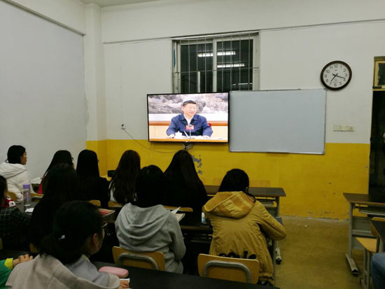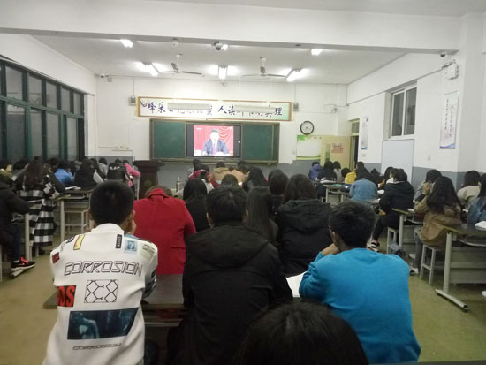 2016年11月13日,tyc7111cc太阳成集团团总支利用晚自习的时间,在问辩楼11个自习教室组织16级全体团员青年900余人观看了十八届六中全会相关视频。