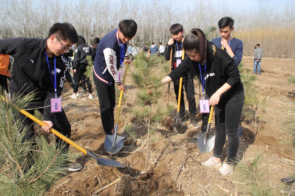 3月15日下午,我系组织学生干部200余人,在24号公寓西侧进行植树活动,共计栽种松树384棵。