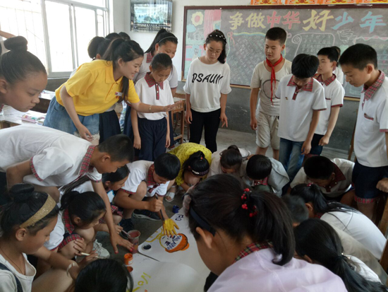 志愿者们的到来受到了老师和同学们的热烈欢迎,孩子们把大哥哥大姐姐们当成了自己的大朋友,手拉手做起了游戏——击鼓传花、丢手绢、绑腿跑、贴树皮……大家玩儿的不亦乐乎!志愿者们还和小朋友一起拿起画笔,共同描绘 “我的未来 我的梦想”,小朋友们边画边讲解,充满了对美好未来的向往。相信通过这样的活动他们也一定会为自己的理想而努力的。