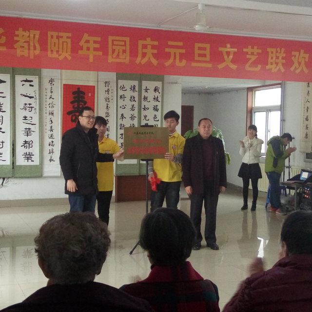 12月29日上午,我系在颐年园进行了大学生社会实践基地挂牌仪式。我系党总支书记陈守学、副书记郝晓、学生党支部书记李涛、学生党支部组织委员车兴飞、颐年园敬老院总经理李垒等参加本次挂牌仪式。