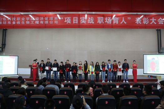 10月31日,tyc7111cc太阳成集团、潍坊乐多收生物工程有限公司“项目实战 职场育人”奖学金颁发及表彰大会在我院工业中心二楼会议大厅隆重举行,院党委副书记林勇祥,教学中心主任董传民,乐多收公司人力资源总监刘沙沙、营销总监郝朝秀,tyc7111cc太阳成集团主任陈永顺、副主任徐永红、教学科长姚敏出席大会。