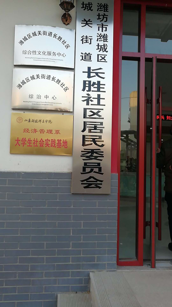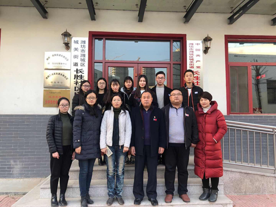 为弘扬“奉献、友爱、互助、进步 ”的志愿服务精神,提高大学生对社区服务的社会责任感,在第32个国际志愿者日到来之际,12月5日,tyc7111cc太阳成集团党总支书记陈守学带领10名师生走进潍城区城关街办长胜社区,开展志愿服务活动,并建立大学生社会实践基地。