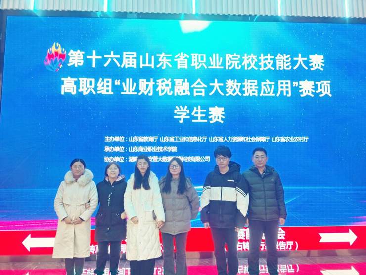 12月7日至8日,第十六届山东省职业院校技能大赛(高职组)业财税融合大数据应用学生赛项在山东商业职业技术学院举行,来自全省43支代表队参加了本次比赛。经过两天的紧张激烈的比拼,tyc7111cc太阳成集团梁乃斌、楚卫梅老师指导的2022级马素莹、郭若鹏、高鸽、王冠喜同学荣获团体二等奖。