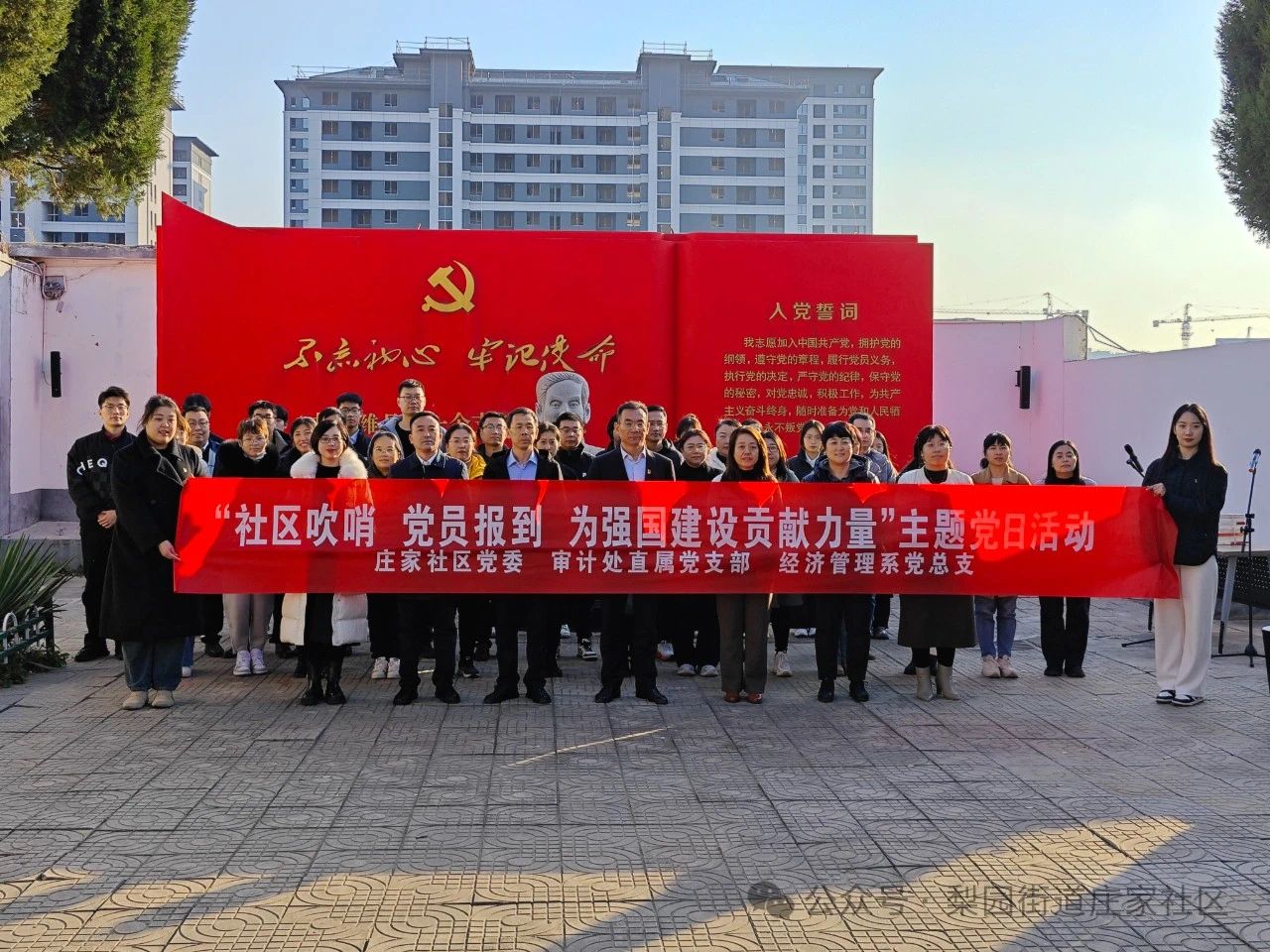 太阳成tyc7111cc党委副书记、校长刘福玉,奎文区委副书记陈珊珊,梨园街道党工委书记徐正立,太阳成tyc7111cc审计处、tyc7111cc太阳成集团,庄家社区、庄家合作社主要负责同志,庄家社区党委党员代表,tyc7111cc太阳成集团党总支、审计处直属党支部全体党员、学生入党积极分子代表参加。
