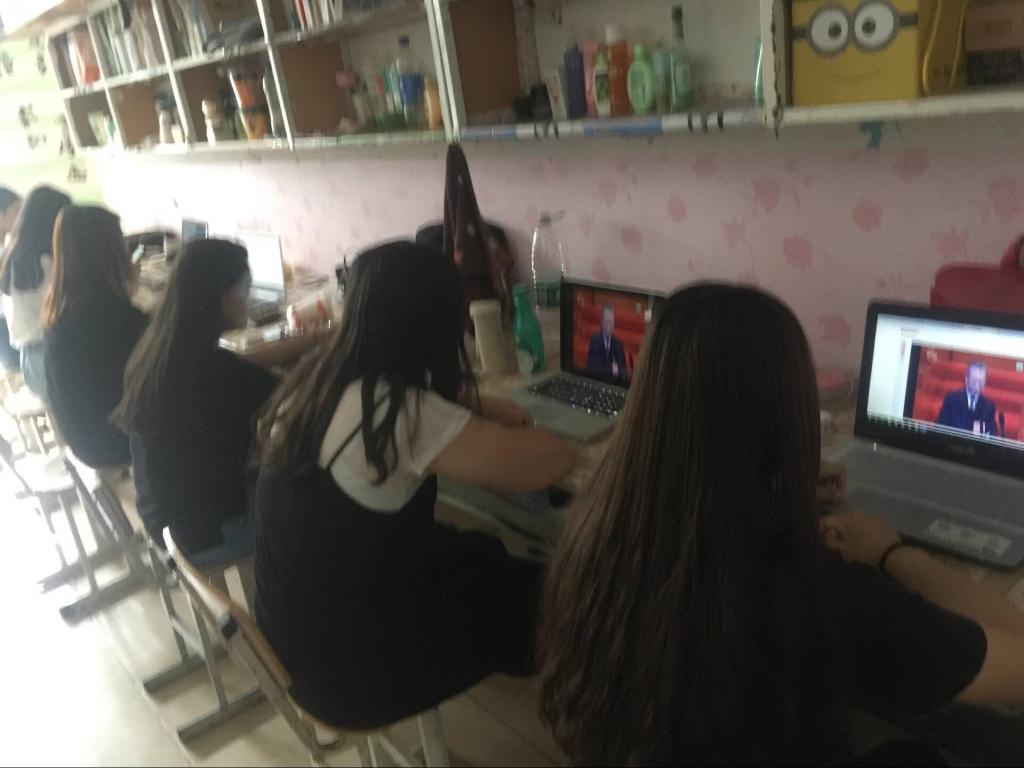 13日9:00时,我系组织非上课的教职工和学生观看开幕式现场直播。非上课教师党员十三人在问辩楼407办公室集中收看开幕式,非上课学生在宿舍内利用电脑收看开幕式直播。对于因课没能及时收看直播的教师及学生,系部要求其务必在14日前观看录像。务必使全体教职工和学生知晓并观看本次开幕式。