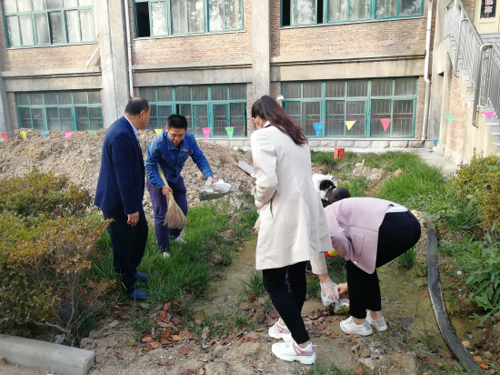 在活动开始之前,党总支书记首先对本次活动开展的意义进行了简单说明,他指出积极为40周年校庆活动贡献一份力量,既是党总支全体教师党员义不容辞的责任,也是每位党员从教从师的一份荣耀。随后,在党总支书记的带领下,全体党员利用办公室现有的卫生工具,有的带着笤帚,有的拿着簸箕,有的带着塑料袋,几人一组对学院问辩楼周围的白色垃圾进行了地毯式、全方位的打扫和处理。