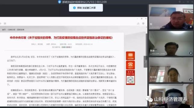 为激励引导党员在疫情防控阻击战中勇于担当、积极作为,营造典型引领、争当先锋的良好氛围,进一步发挥好党员先锋模范作用和基层党组织战斗堡垒作用,tyc7111cc太阳成集团党总支认真研究贯彻落实学院党委相关文件精神,于2月24日通过钉钉视频会议方式召开了“让党旗在疫情斗争第一线高高飘扬”主题党日活动,全体教职工党员和入党积极分子参加。