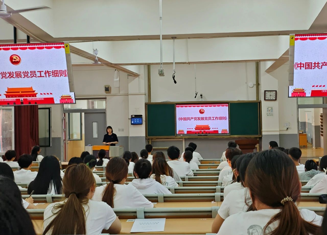 党的基层组织把吸收具有共产主义觉悟的先进分子入党作为一项经常性的重要工作。为了切实保证新发展的党员质量,保持党组织的先进性和纯洁性,提高党的战斗力,依据《中国共产党章程》的规定制订了该细则。祝晓菲老师带领广大入党积极分子研读细则内容,介绍党员的相关义务和要求准则,展开中国共产党党纪学习教育,呼吁各位入党积极分子发挥一定的先锋模范作用,将党的纲领宗旨内化于心外化于行。此外,祝晓菲老师带领各位入党积极分子填写入党积极分子培养教育考察记录簿,并认真叮嘱相关注意事项,让各位同学更加深刻的感受到了加入中国共产党所需要的纪律性和严肃性。