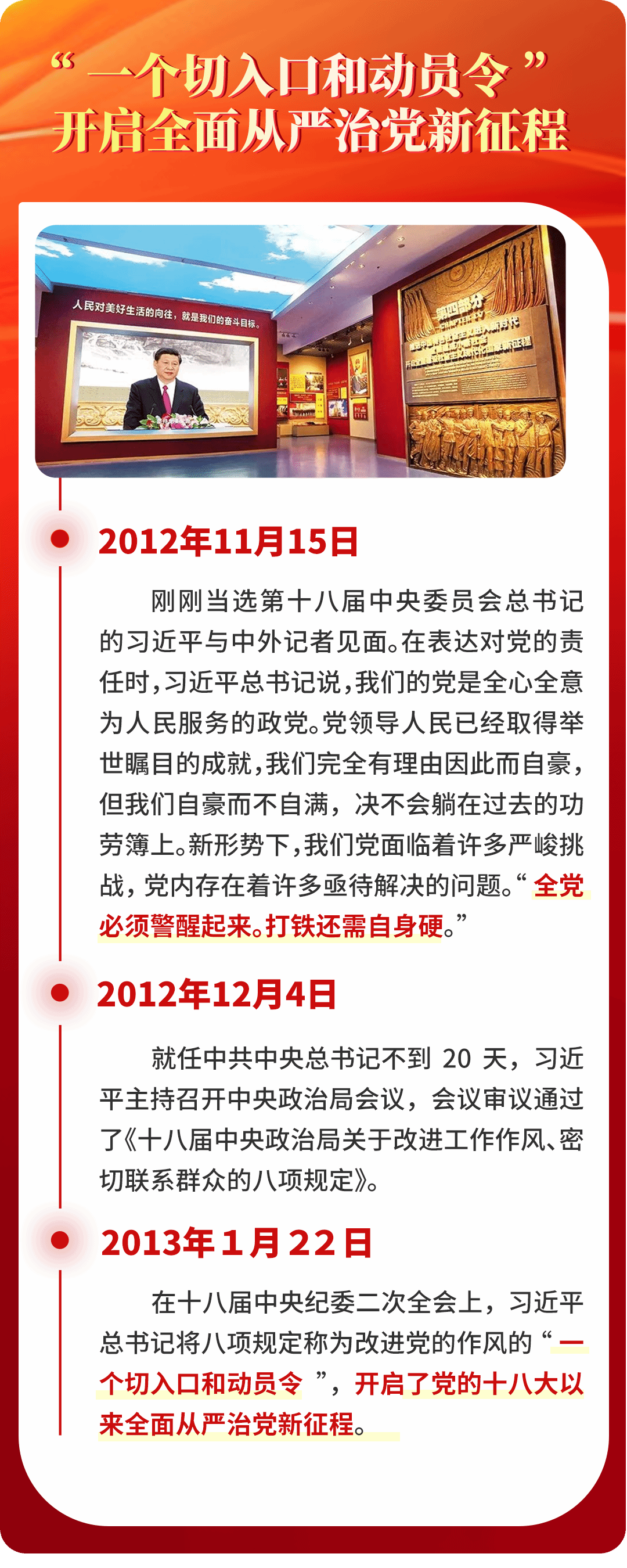 中央八项规定,短短600余字,涉及改进调查研究、精简会议活动等多方面。自出台以来,中央八项规定带来的党风政风社风民风变化,深刻影响和改变着中国,成为新时代中国共产党作风建设的“金色名片”。