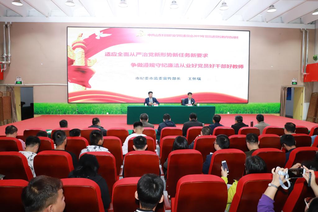 10月13日下午,潍坊市纪委委员、市纪委市监委宣传部部长王怀瑞应邀到校,为全体党员和部分学生入党积极分子作了题为《适应全面从严治党新形势新任务新要求 争做遵规守纪廉洁从业好党员好干部好教师》的廉政教育讲座。讲座由校纪委书记秦建坤同志主持。