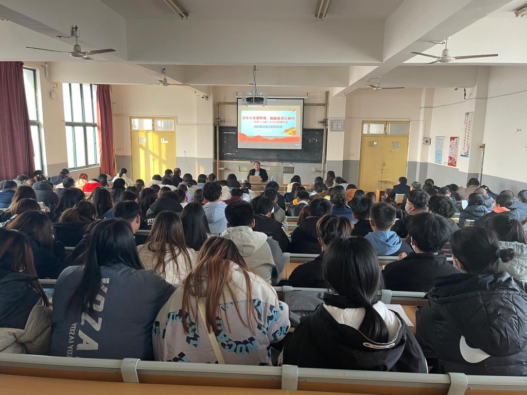 最后,刘桂玉围绕新时代教师和大学生如何担当新使命提出希望:要更加紧密地团结在以习近平同志为核心的党中央周围,全面贯彻习近平新时代中国特色社会主义思想,大力弘扬伟大建党精神,勿忘昨天的苦难辉煌,无愧今天的使命担当,不负明天的伟大梦想,争做新时代“四有”好老师,不断推动思想再解放、创新再发力、工作再推进,为学院高质量发展贡献力量。