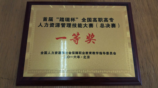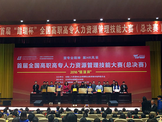 2016年12月3日,由全国人力资源和社会保障职业教育教学指导委员会主办,北京劳动保障职业学院承办的首届“踏瑞杯”全国高职高专人力资源管理技能大赛(总决赛)如期举行,来自全国18个省市的48支代表队展开激烈角逐,由徐海云和王东亮老师指导,2015级工商企业管理专业学生宋芳、方真真、程豪媛组成的我院代表队通过北部赛区预赛出线后,获得决赛资格。总决赛中同学们不畏强手,齐心协力,沉着应战,经过近五个小时的角逐,最终荣获全国总决赛一等奖。